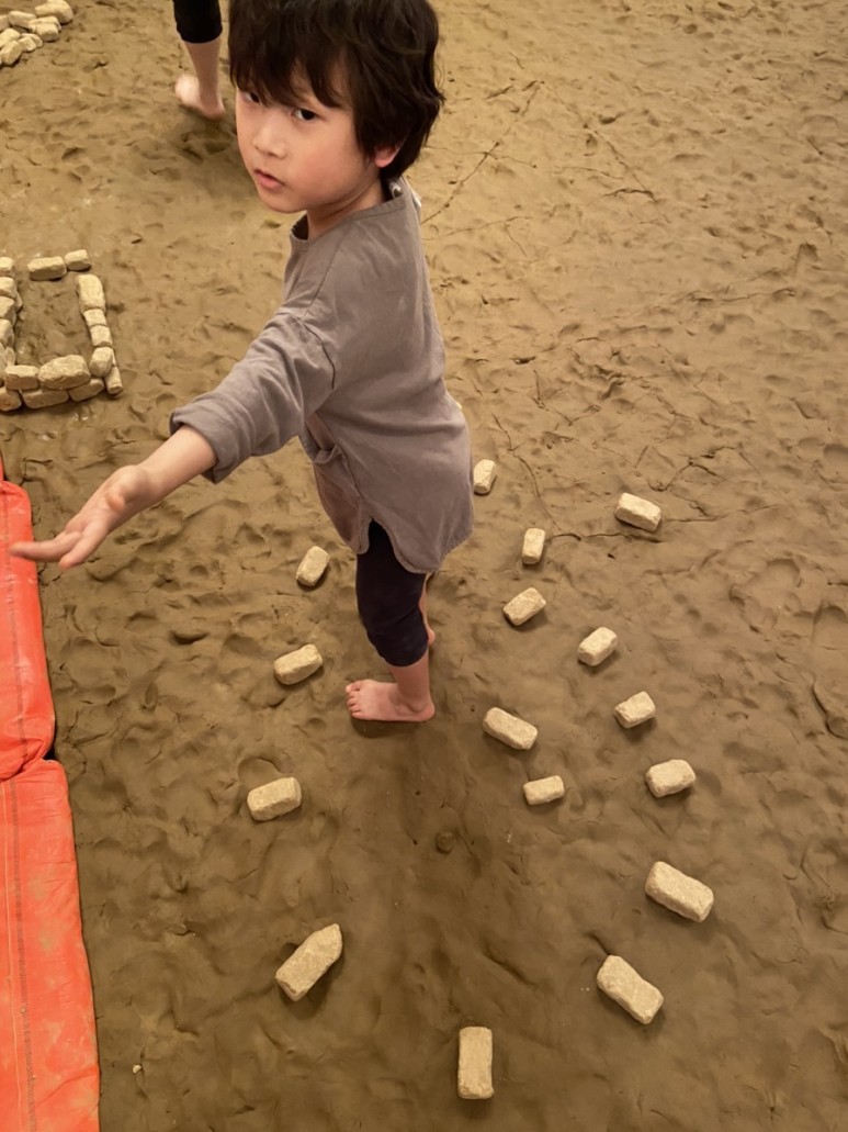옆에있는 흙벽돌로 징검다리 만들었어요!
