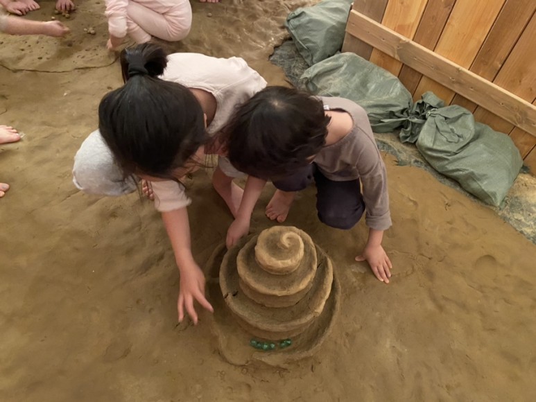 구슬을 흙미끄럼에 굴려보기도했구요.