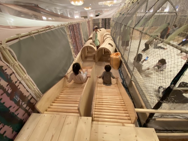 나무로 된 장애물들을 통과해서 미끄럼틀도 탈 수있구요.