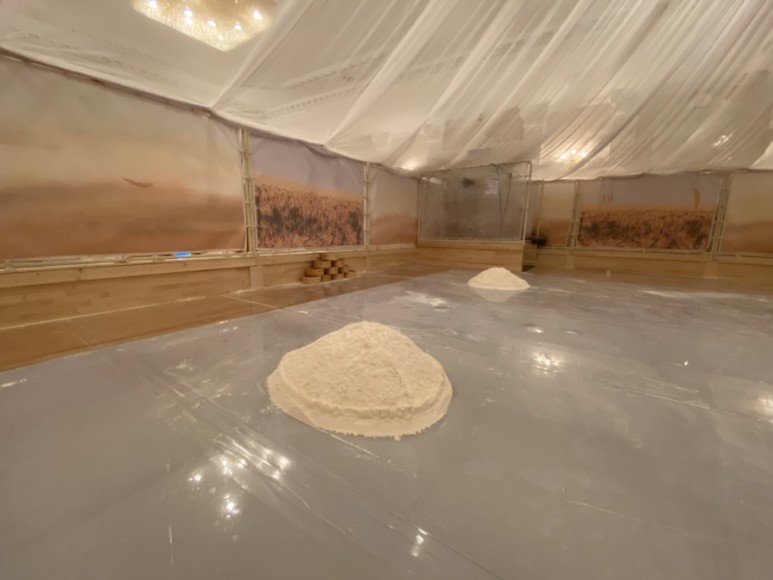 밀가루가 정말 거짓말 조금 보태어 산처럼 쌓여있어요.