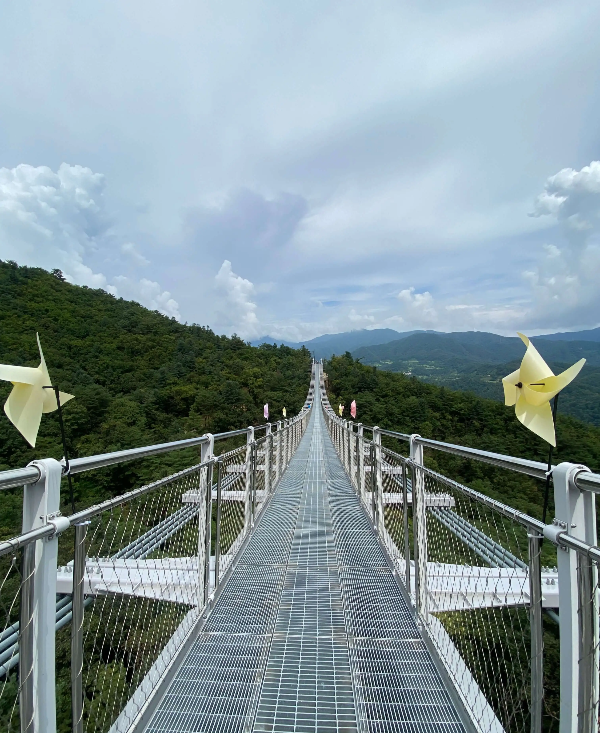 높은 출렁다리에서 내려다보는 가평의 전경이 아름다워요.