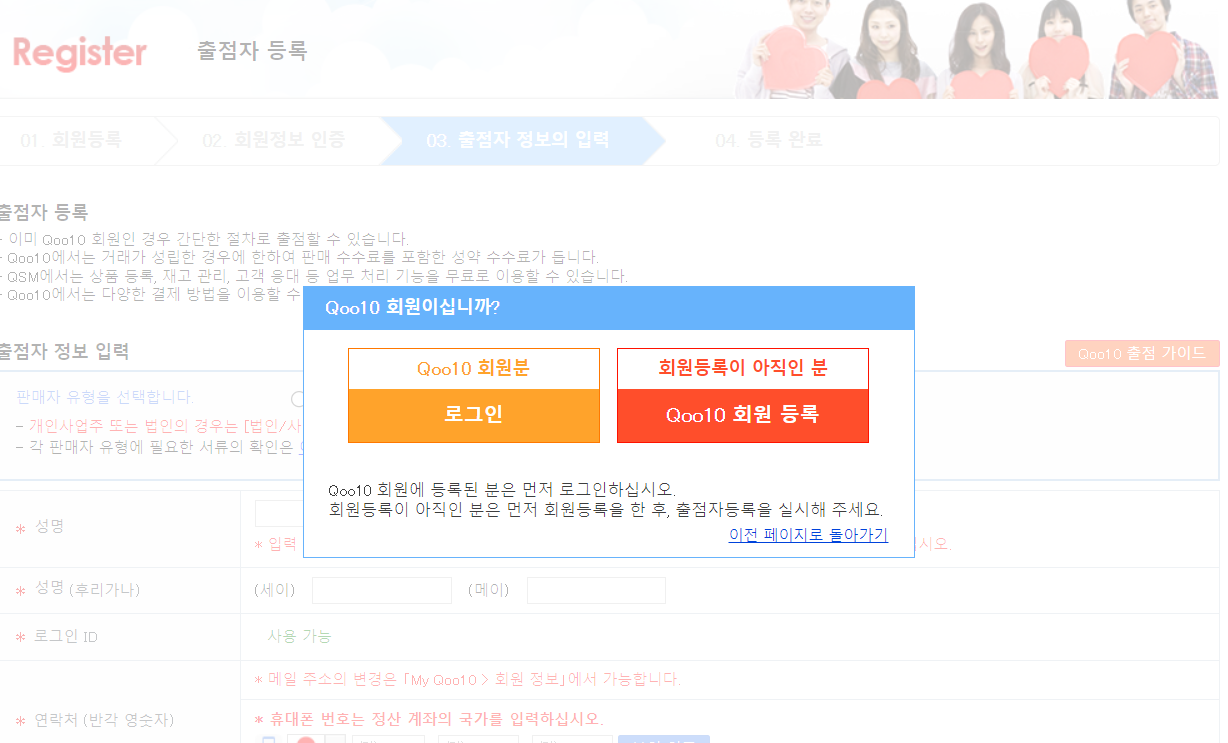 1일차에 큐텐재팬 셀러 회원가입과 출점등록까지 완료.