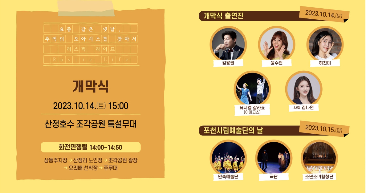 개막식 10. 14.(토) 15:00 / 산정호수 조각공원 특설무대