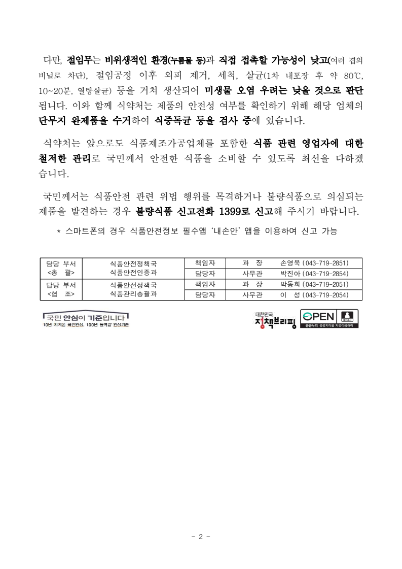 식품을 제조하고 납품하는 업체로서의 책임감은 물론 죄의식도 없어보입니다.