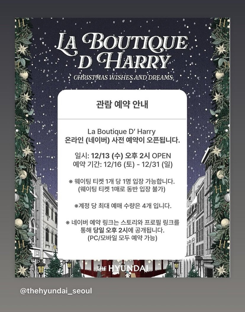 더현대 서울 크리스마스 빌리지 4차 사전예약 유의사항