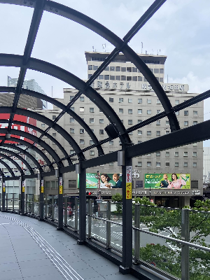 구름다리 구름다리에서 보이는 신한큐 호텔이에요.