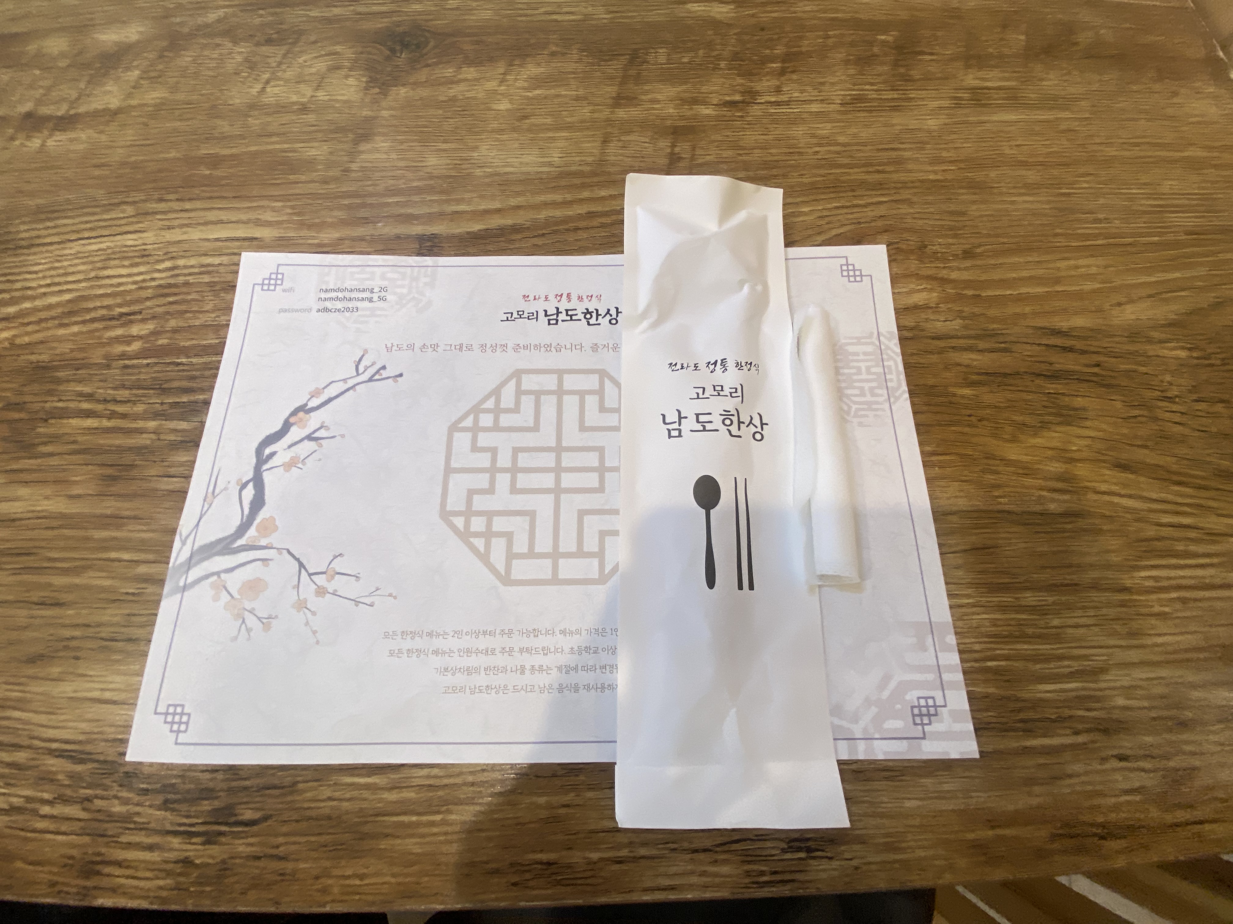 남도한상의 메뉴판입니다. 메뉴판도 굉장히 정갈하고 신경쓴 느낌입니다.