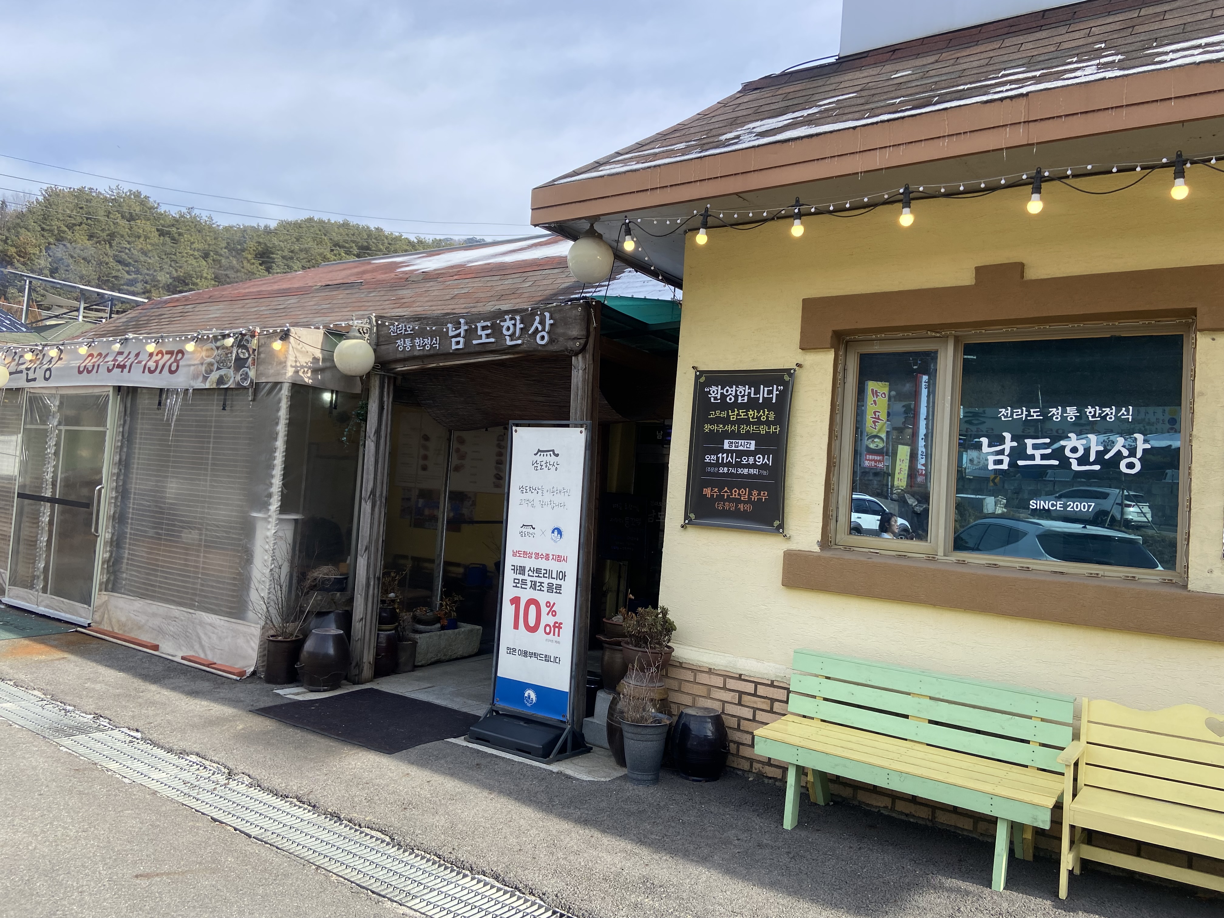 남도한상 식당 외부와 주차장