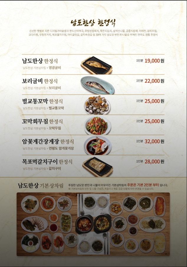 남도한상 메뉴