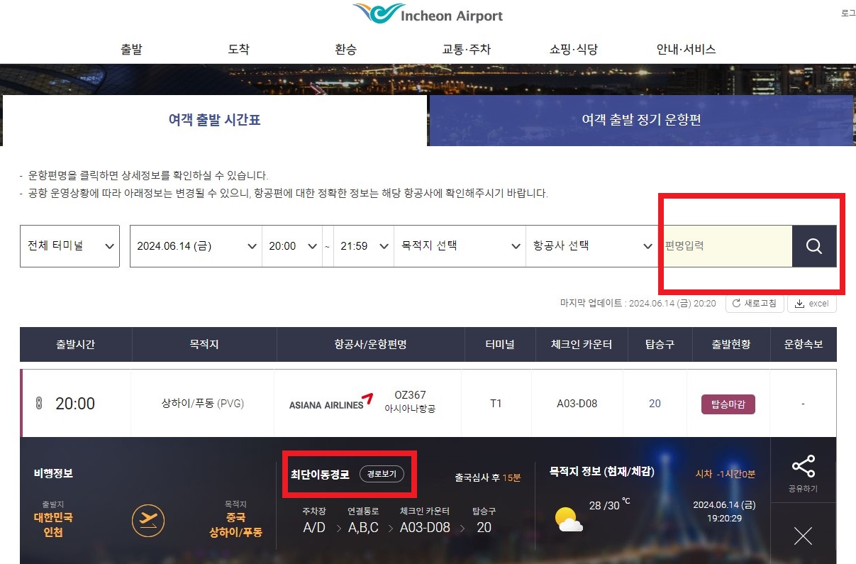 인천공항 홈페이지에서 내 터미널 확인을 클릭하고, 검색창에 나의 항공편명을 검색하면 바로 확인이 가능합니다.