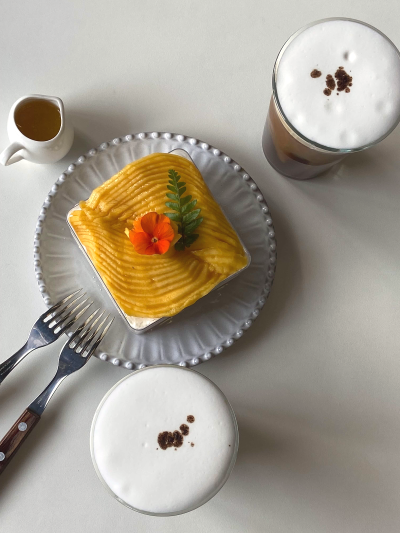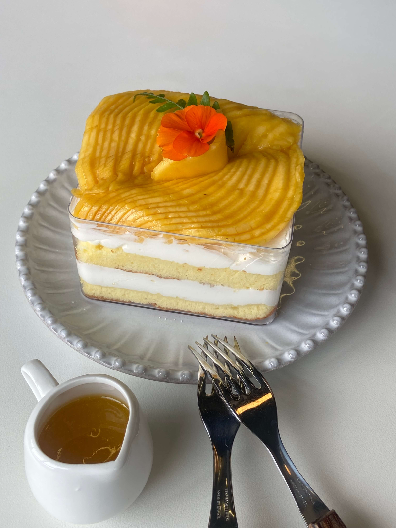 망고 퓨레를 뿌려먹으면 정말 달콤한 망고맛과 촉촉한 시트를 한 입에 느낄 수 있어요.