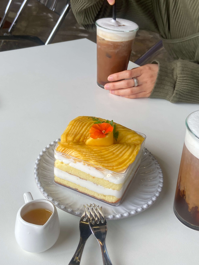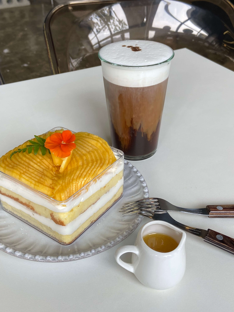 금남리커피 @IT COF 잇컾 생망고 케이크 (15,000)는 처음에 가격을 보고 좀 비싼가 싶었는데 케이크 크기를 확인하니 오히려 합리적이고 가성비있다고 느꼈어요. 정말 생망고가 가득가득 올려져있고, 빵 사이 사이에도 생망고가 들어있어요.