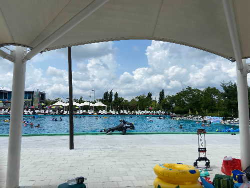점심 먹고 수영복을 탈의실에서 갈아입고, 야외 샤워시설에서 몸을 잠깐 헹구고 수영장에 입수했습니다.