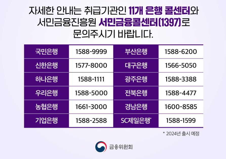 - 11개 취급은행 콜센터