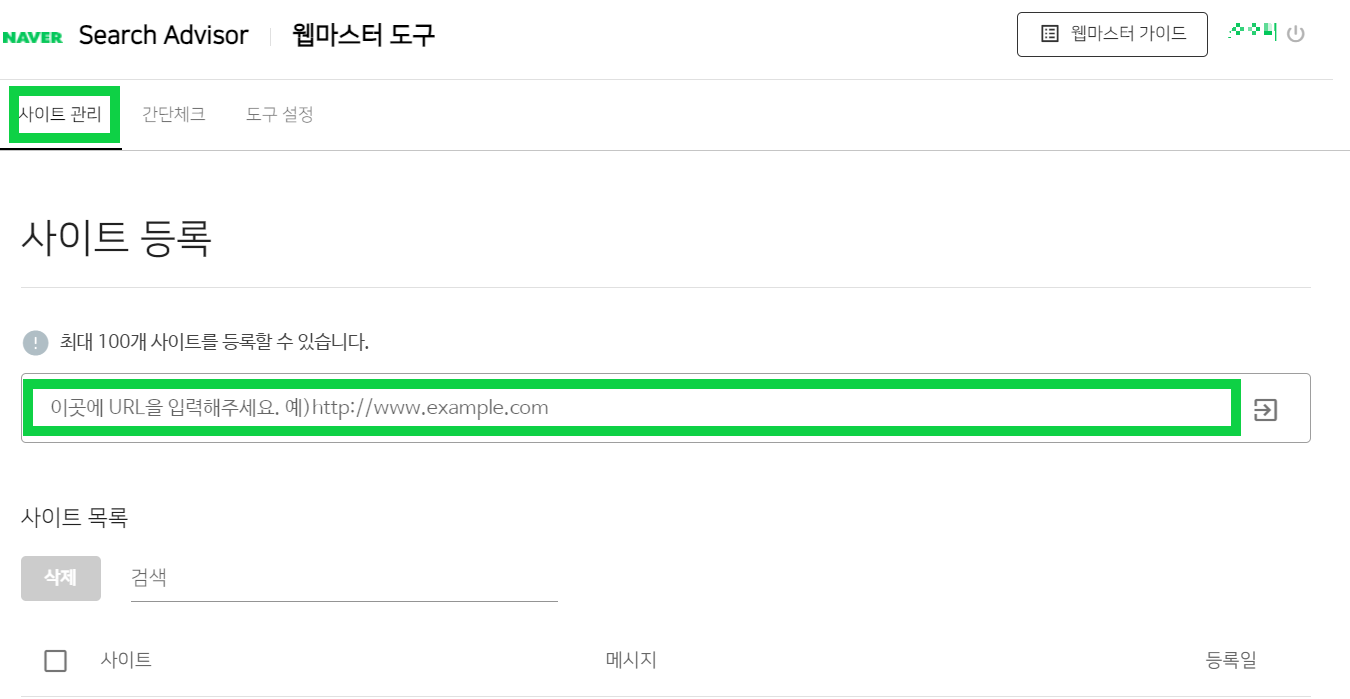 네이버서치어드바이저 2.사이트 관리