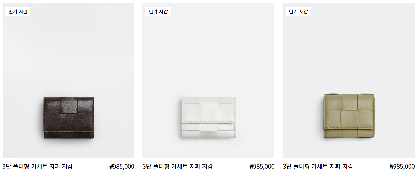보테가베네타 카세트백이 유행하면서 카세트 지갑도 함께 유행중이고 다양한 색상의 제품이 있어 유색 지갑을 구입하고 싶은 분들에게 좋은 선택지 입니다. 보테가베네타 지갑은 위의 다른 브랜드보다 조금은 덜 흔한 느낌이기도 합니다.
