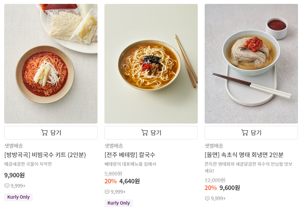 면류, 국수류 : 주말 한 끼는 면! 국수, 칼국수, 냉면 좋아하시는 분들을 위해 국수 밀키트 추천드려요!